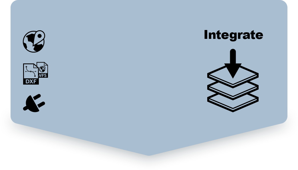 Integrate with your existing systems: Esri, QGIS, BIM, APIs, and open data formats. You retain full interoperability and data access.