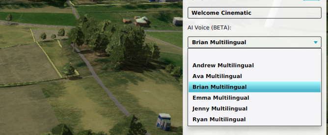 – Audio: A technique that has already evolved over the past years is text-to-speech. Using cognitive services from Azure we can connect texts to human speech converters. Last year this allowed us to create 60 how-to movies in a very short time period. This model was later on also used as an voice assistant in our Free-Trials and with the upcoming release (2024.6.6) it will be available in the Cinematics (fly-trough) option to create your own voice-overs. Tygron users will have the option to select several voices (male, female) and languages. Personally I was very impressed by the quality of the Dutch language in this model.